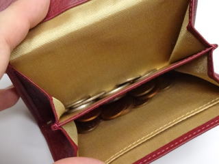 ・サイズ:縦9.5×横11.5×厚さ2.0(cm) ・素材:表/牛革・中/牛革・裏/シャンタン ・お札収納1ヶ所、小銭収納2ヶ所、カード段3段、ポケット3ヶ所(内1ヶ所はお札取り出し用) ・裏地カラー:ブラック(ブラック)、ワイン(ゴールド)、オレンジ(ゴールド)、グリーン(ゴールド)、ネイビー(ブラック)、マスタード(ゴールド) ※商品のカラーはPC環境などにより若干異なって見える場合がございます。
