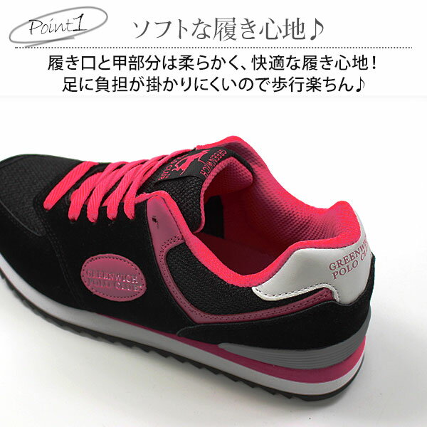 スニーカー レディース 黒 ローカット 靴 GREENWICH POLO CLUB PC4748の商品について ・履き口と甲部分にクッション性があるので、履き心地バツグン♪