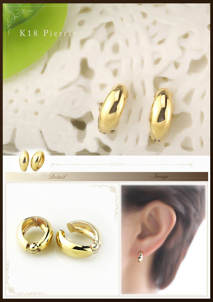 K18フープピアリング(13mmスピンドル) ピアスのように見える新世代イヤリング ねじ金具がないので抜群のおしゃれ感 柔らかなラインが女性らしいピアリング。