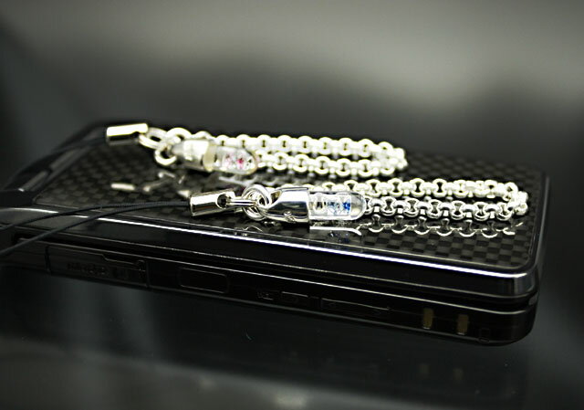 丸みのある可愛らしいカプセルヘッドをブラさげてあるチェーンストラップです。
