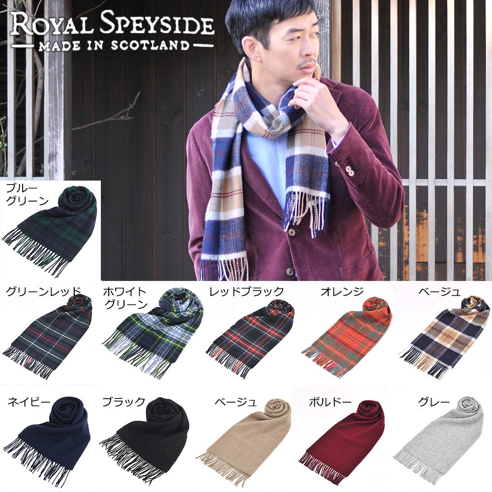 ロイヤルスペイサイド スコットランド製ウール100% メンズ レディース兼用可能 6色 チェック柄 フリンジマフラー ROYAL SPEYSIDE ジョンストンズ